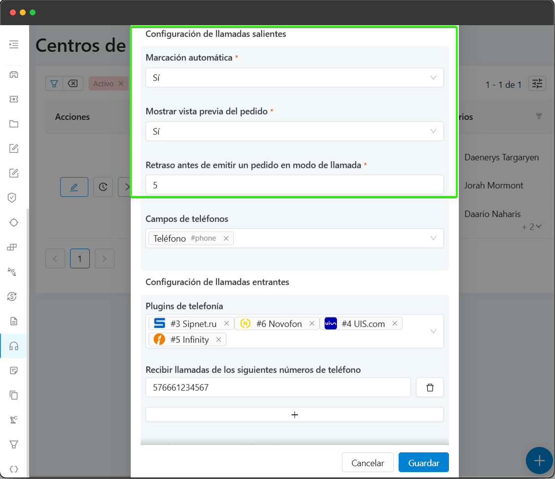 En SalesRender, puede agregar varios proveedores de telefonía a la vez y activar la rotación automática entre ellos.